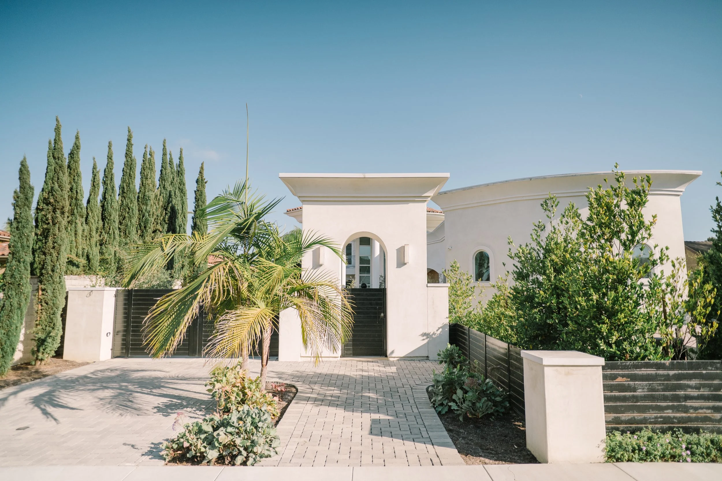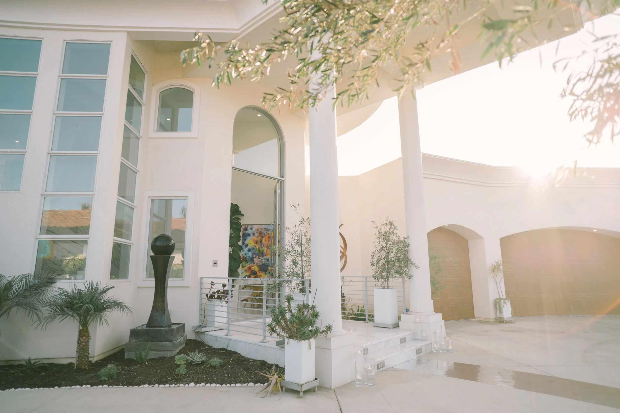 Welcome to a stunning modern estate that epitomizes elegance and sophistication, perfect for hosting unforgettable events. As you approach the property, you're greeted by an expansive wrap-around front courtyard that seamlessly blends outdoor beauty with modern architectural design.