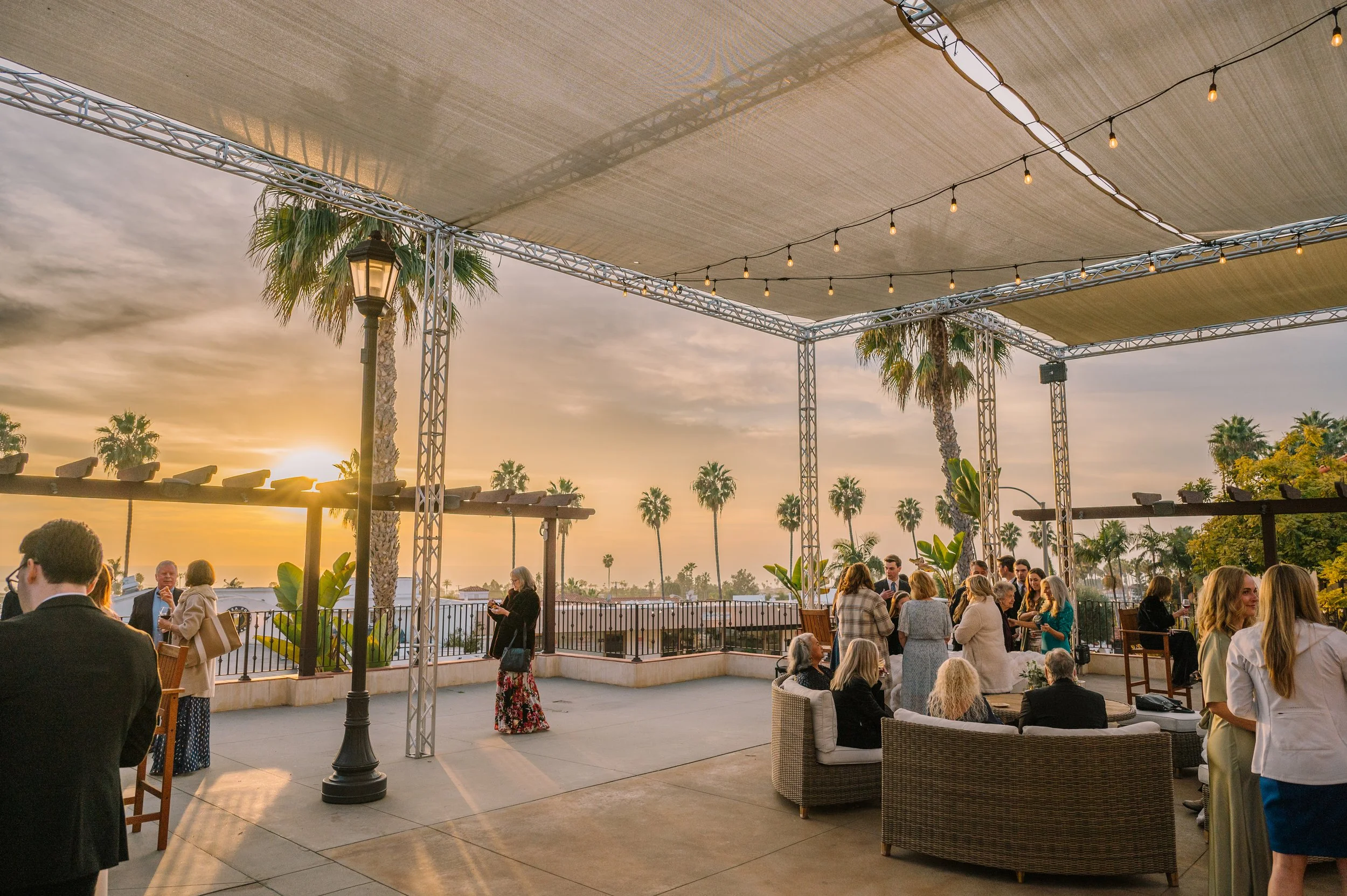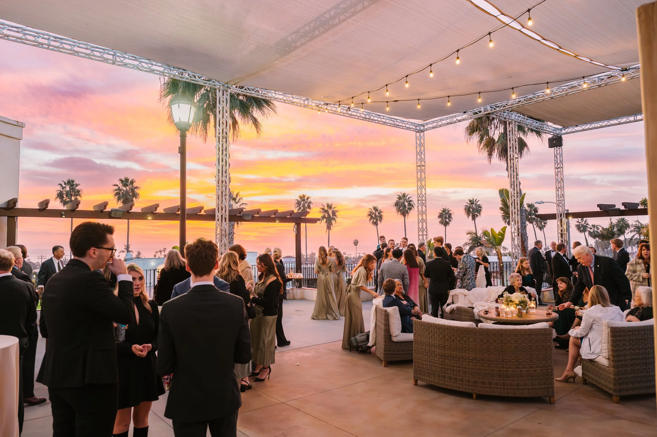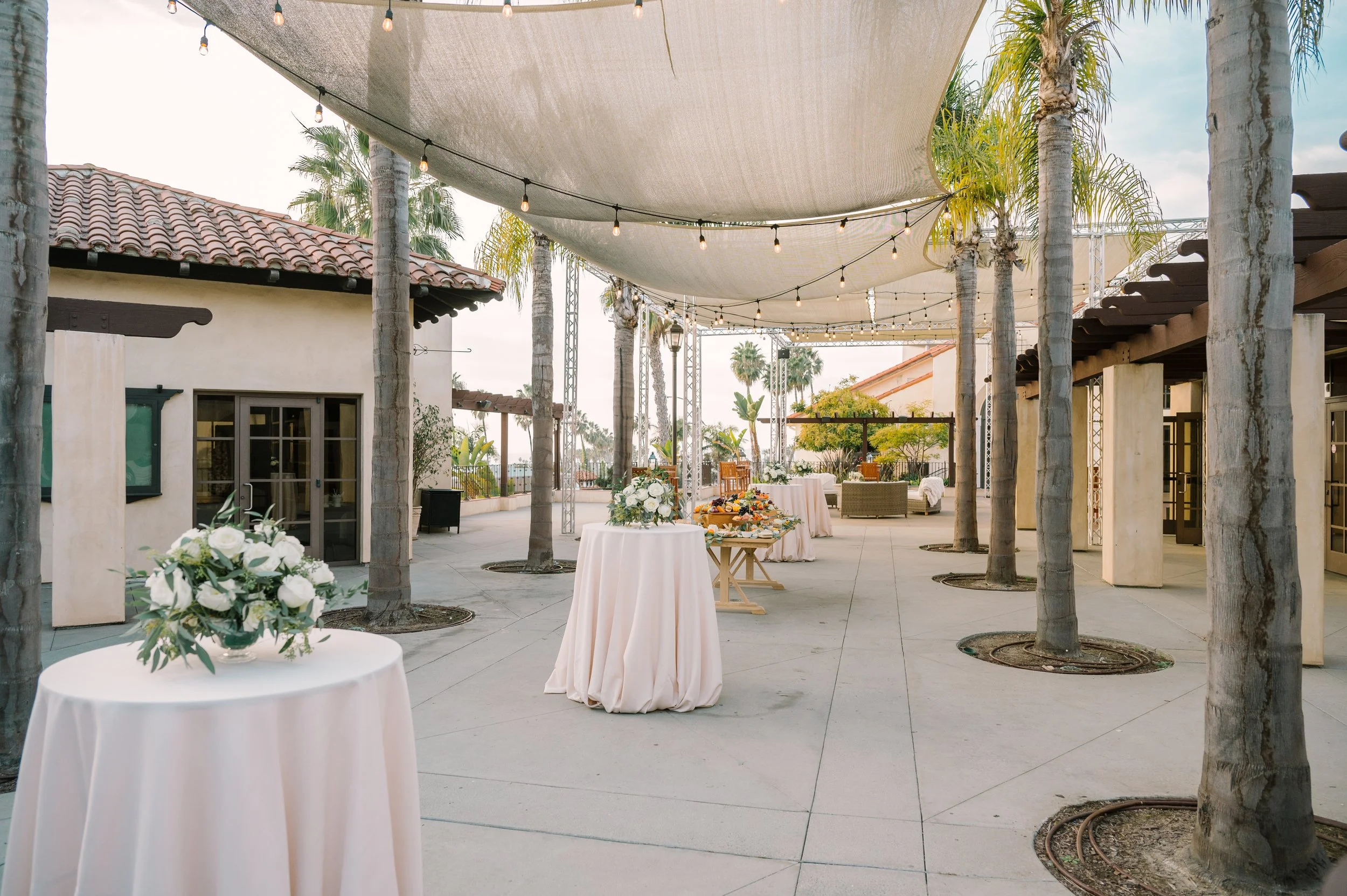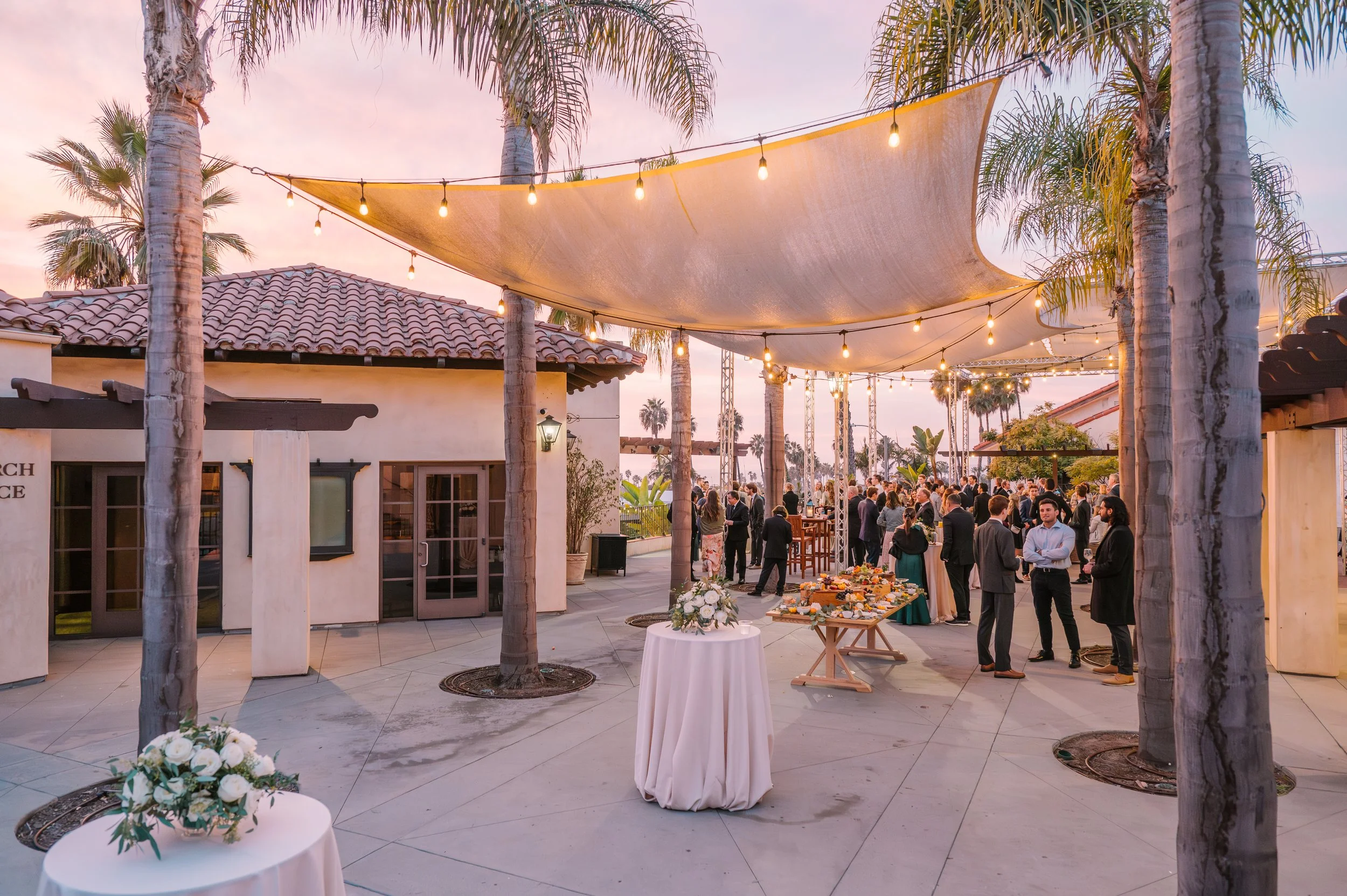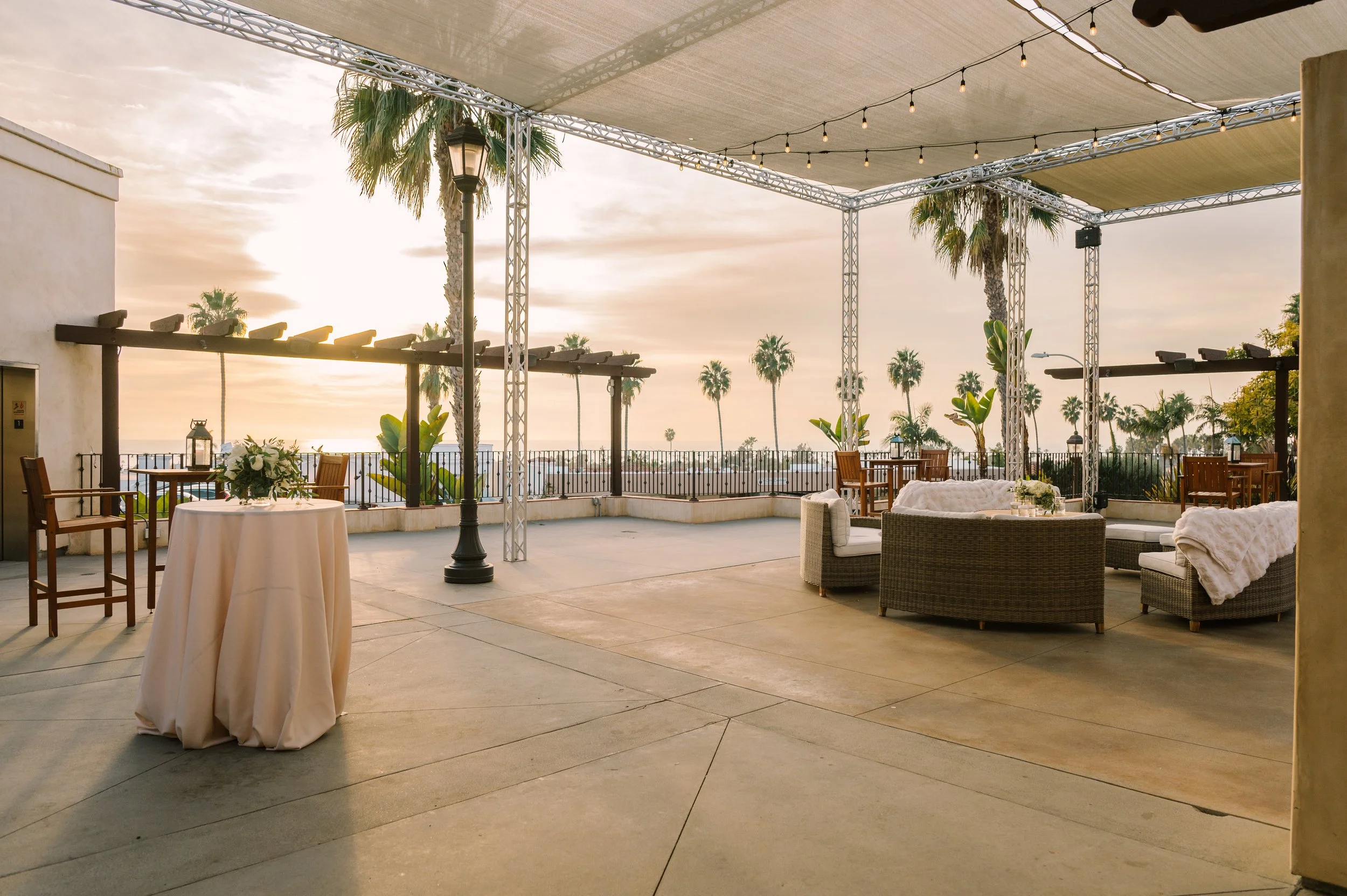 The Ocean Terrace and Great Room is in the heart of Downtown San Clemente and has expansive ocean and palm lined sea views. Perfect for wedding ceremonies and celebrations. To dance the night away is a Santa Barbara architecturally designed property with exposed wood beam high rafters and French doors. Designed to capture the most amazing sunsets over the ocean. Based on guest count, the venue could be designed to best accommodate your numbers. Ask about the Secret Chapel and Gardens.
