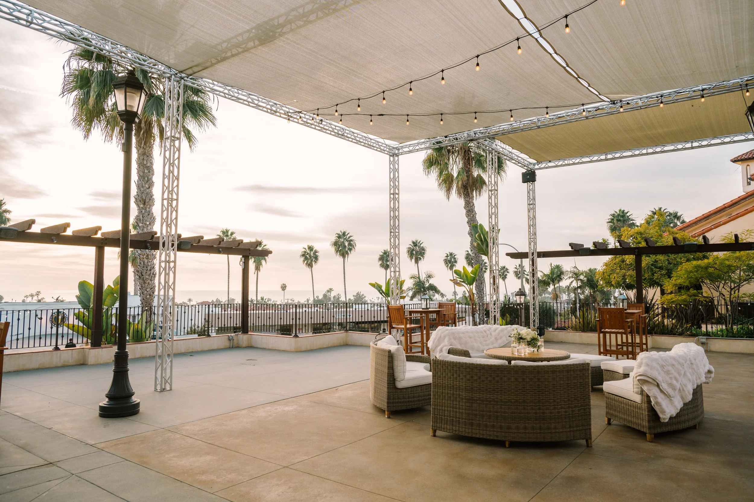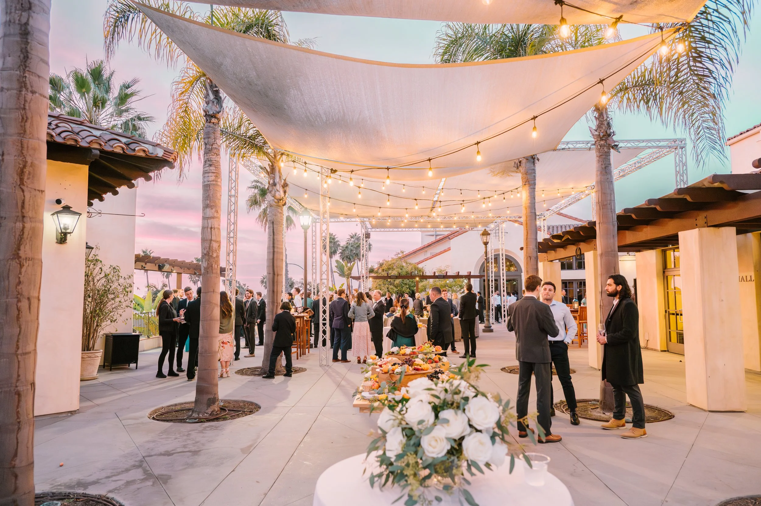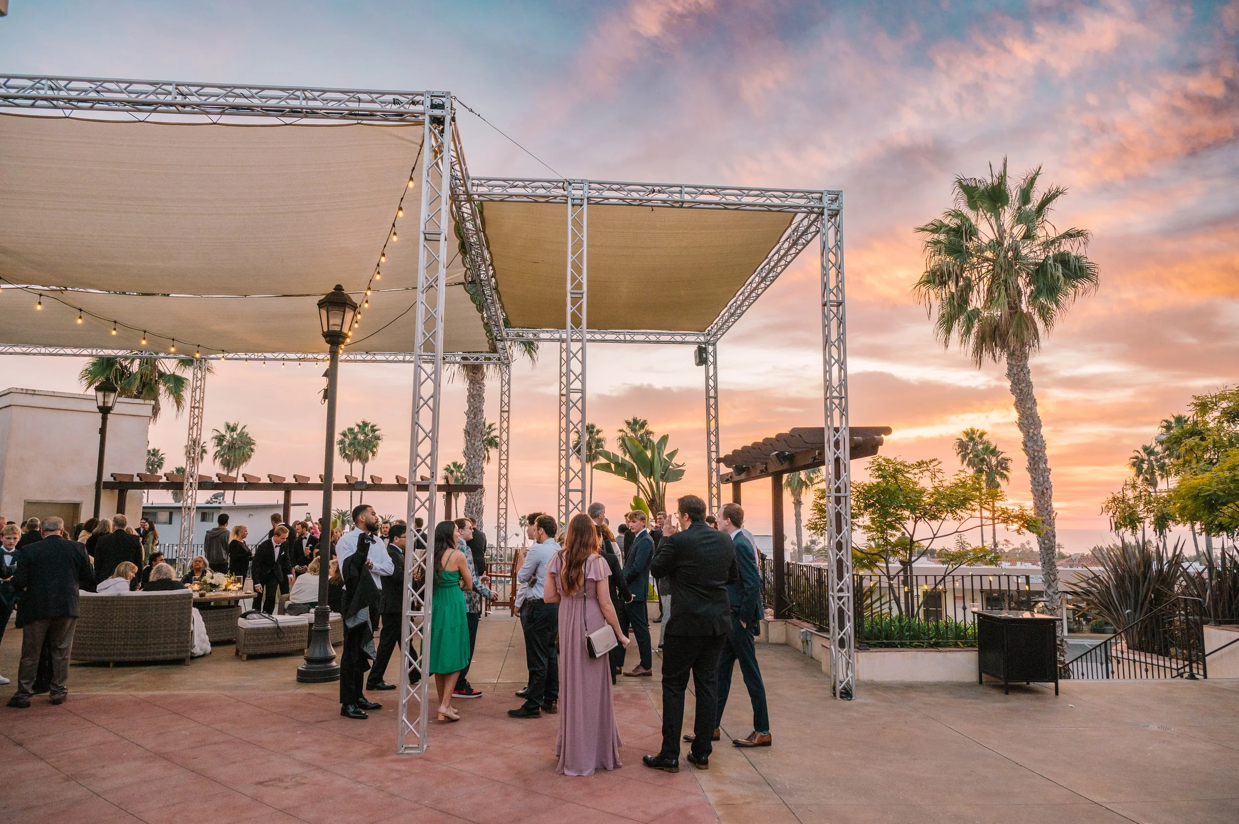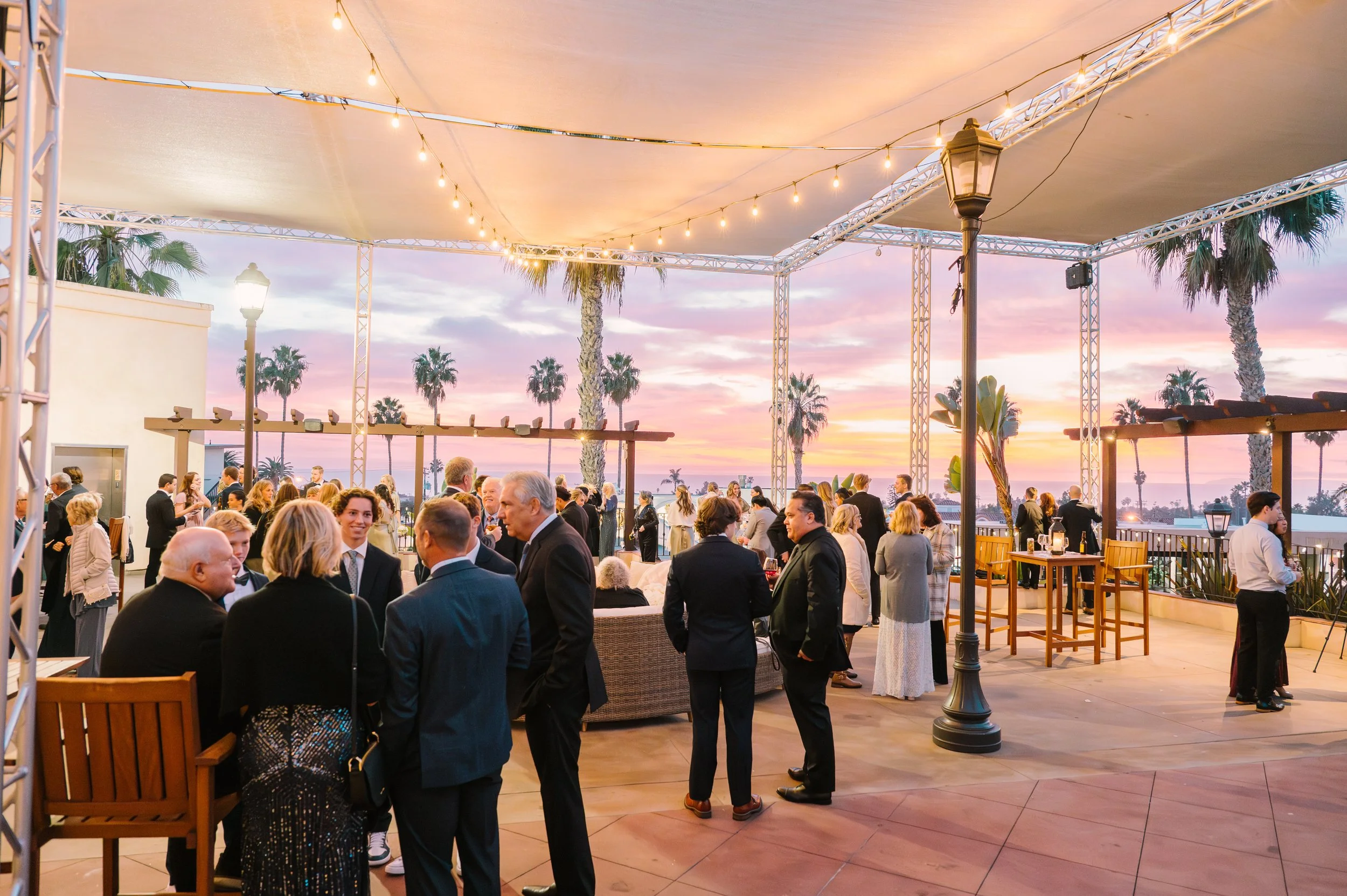 The Ocean Terrace and Great Room is in the heart of Downtown San Clemente and has expansive ocean and palm lined sea views. Perfect for wedding ceremonies and celebrations. To dance the night away is a Santa Barbara architecturally designed property with exposed wood beam high rafters and French doors. Designed to capture the most amazing sunsets over the ocean. Based on guest count, the venue could be designed to best accommodate your numbers. Ask about the Secret Chapel and Gardens.