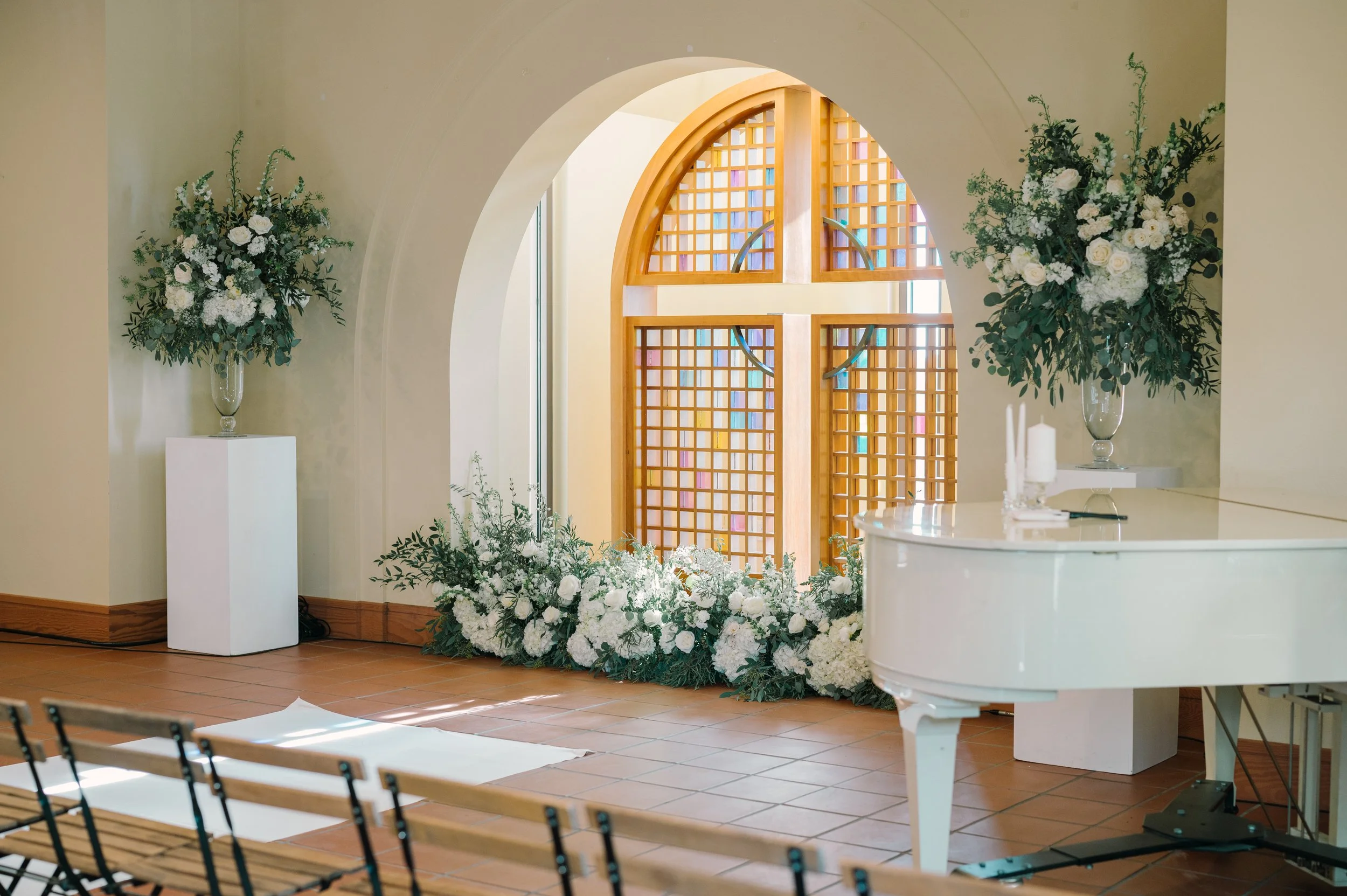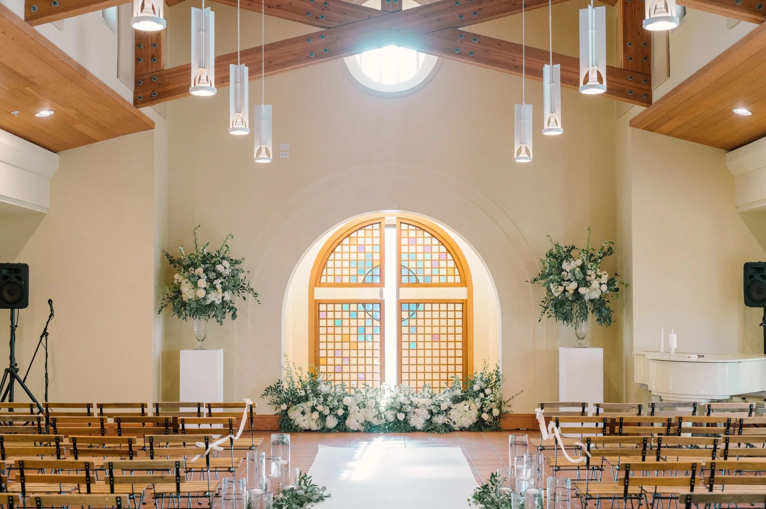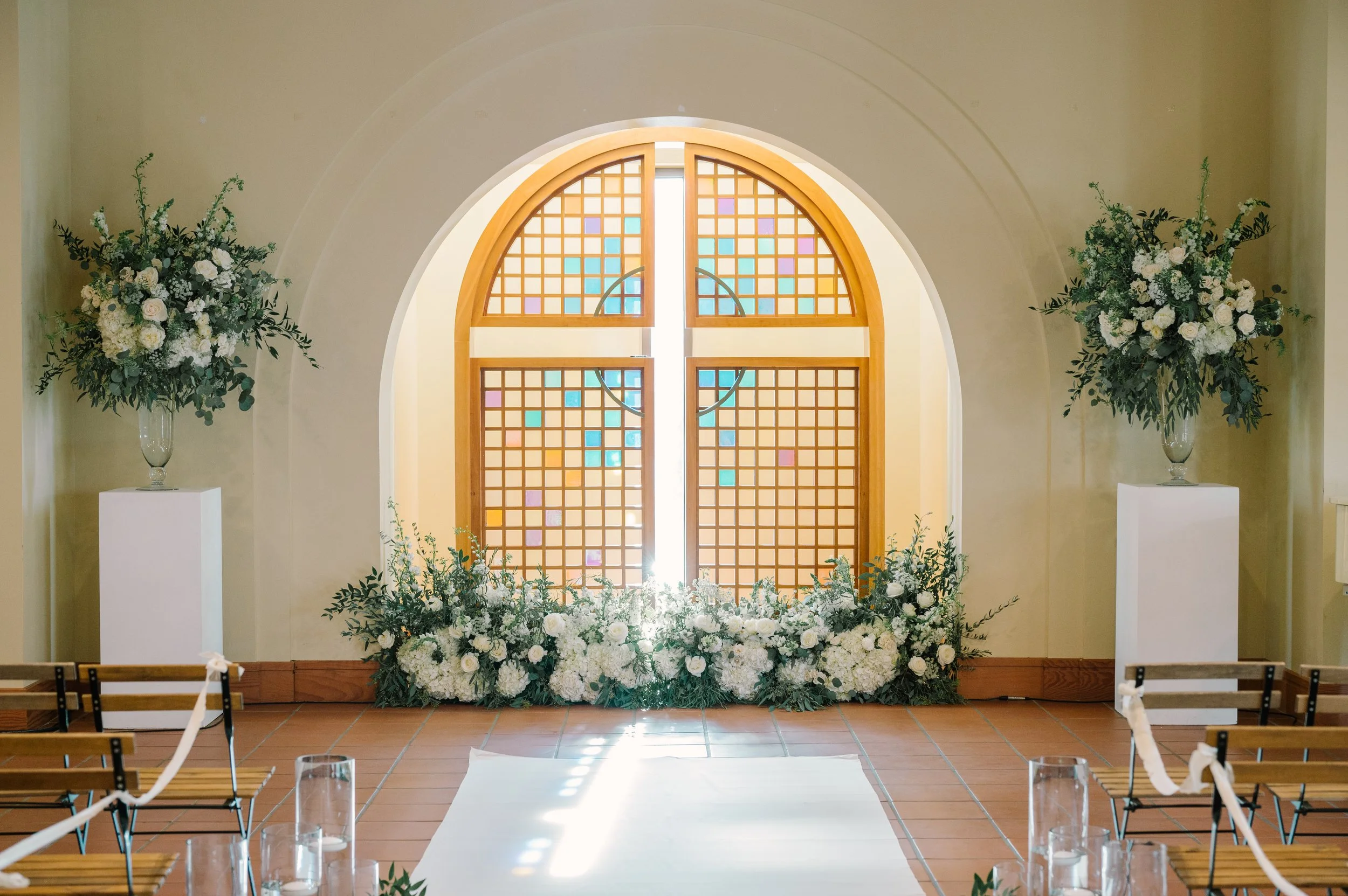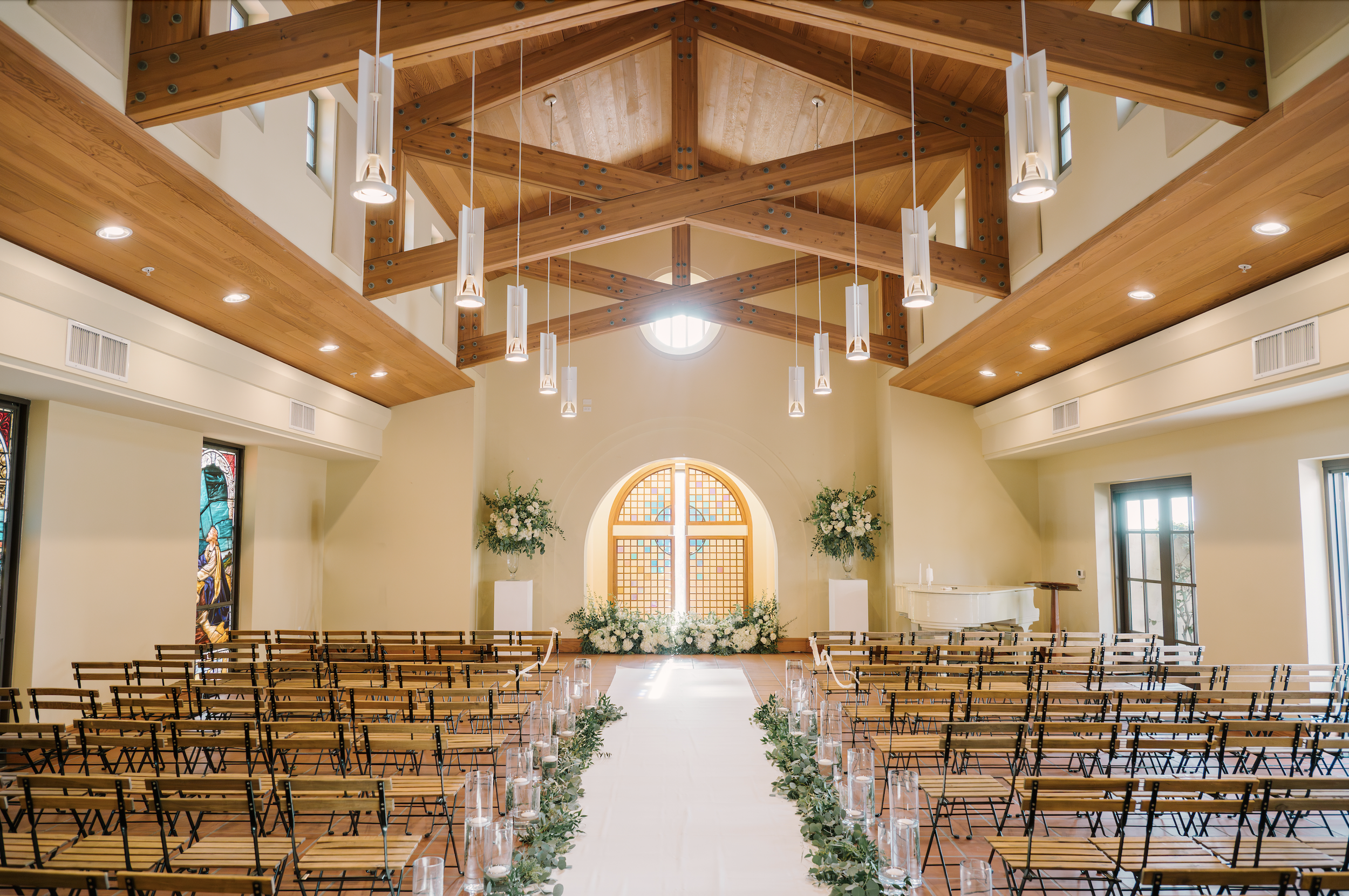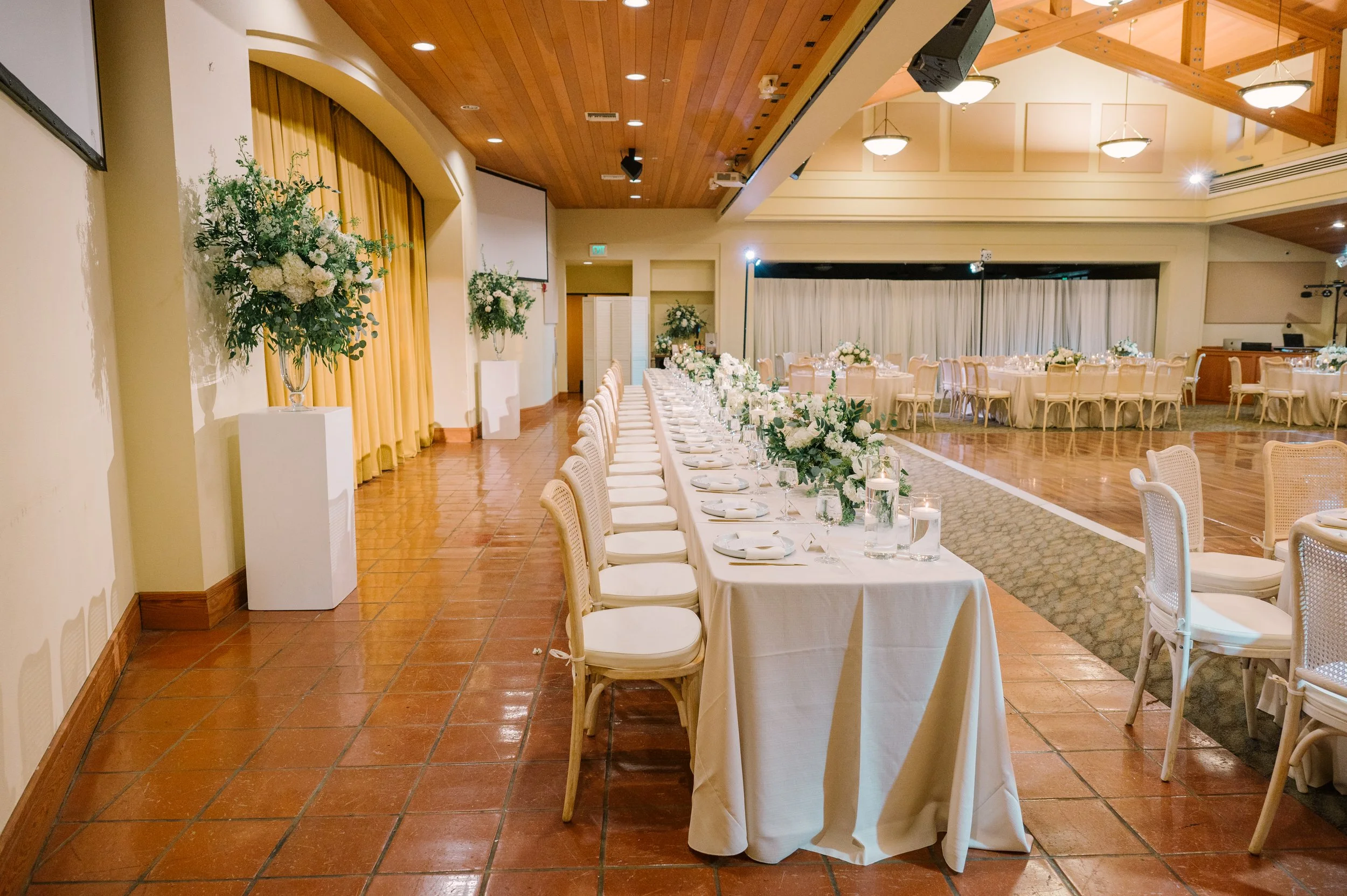 The Ocean Terrace and Great Room is in the heart of Downtown San Clemente and has expansive ocean and palm lined sea views. Perfect for wedding ceremonies and celebrations. To dance the night away is a Santa Barbara architecturally designed property with exposed wood beam high rafters and French doors. Designed to capture the most amazing sunsets over the ocean. Based on guest count, the venue could be designed to best accommodate your numbers. Ask about the Secret Chapel and Gardens.